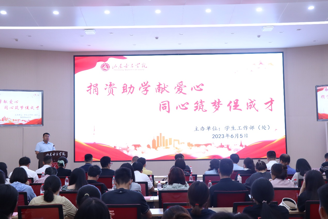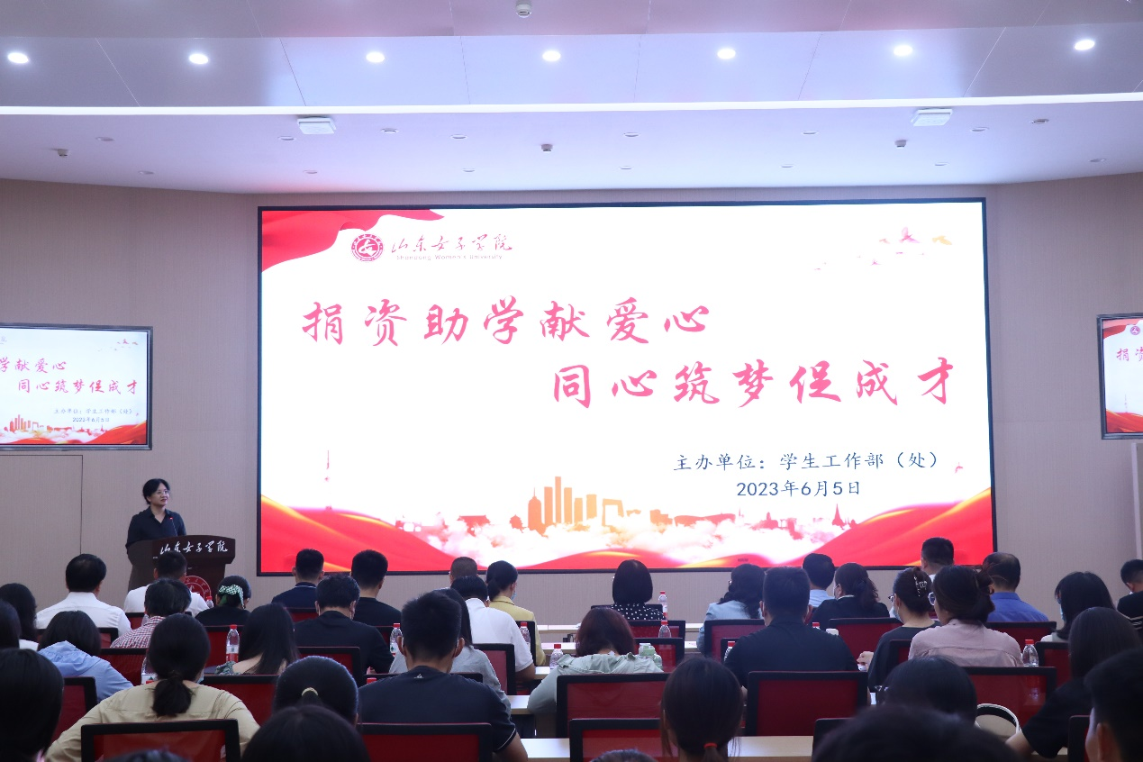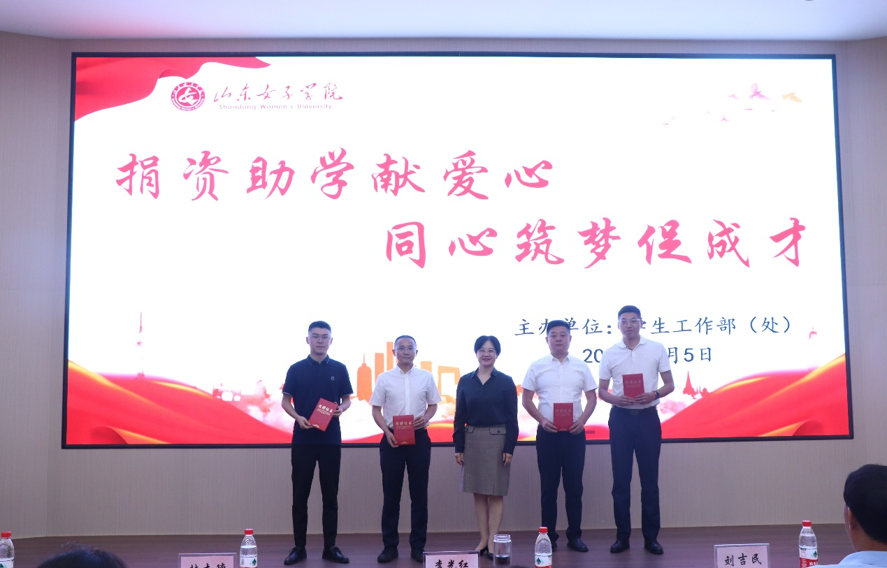 为推动学习贯彻习近平新时代中国特色社会主义思想主题教育走深走实,扎实推进“为学生办实事”工作,近日山东女子学院举办“捐资助学献爱心 同心筑梦促成才”助学活动。学校党委副书记、校长李光红出席,中国移动通信集团山东有限公司济南分公司、山东广伟被服有限公司、济南市长清区高联培训学校有限公司、济南市长清区廿书教育培训学校有限公司相关负责人、各学院学工办主任、学生工作部(处)相关人员、部分师生代表参加本次活动。