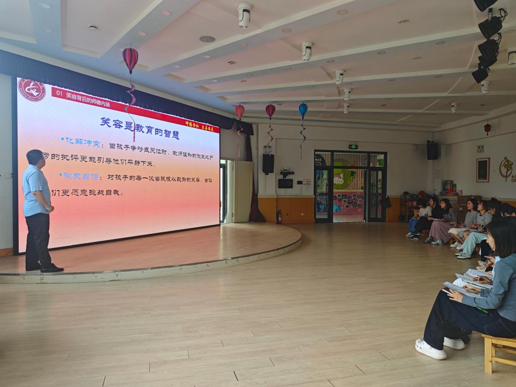 主讲人以《无微不“治”,笑“德”自然——用快乐凝聚孩子成长路上的强大动力》为题,通过解读笑容背后的师德内涵、分析失去笑容的师德警示、探讨笑容育儿的实践策略、分享如何保持笑容的方式方法等内容,诠释“笑容教育”是幼儿教师师德素养的最高境界这一主题。培训充分结合生动案例分享与经验互动研讨,引导全园教职工以“微笑育儿”“快乐教育”为核心,践行师德初心,赋能幼儿成长。