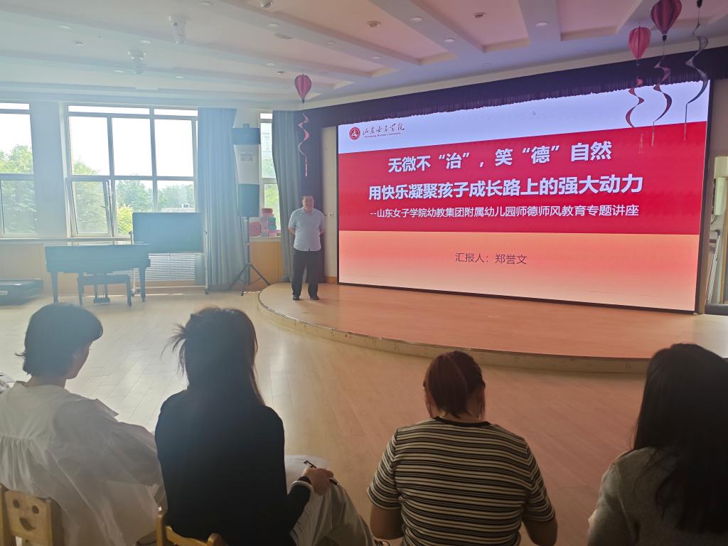 为深入贯彻落实新时代幼儿园教师职业行为十项准则,深化师德师风建设,5月15日中午,学校幼教集团在附属幼儿园(长清园)多功能厅开展专题培训,培训由幼教集团业务负责人郑誉文主讲,全体幼儿园教师及部分管理服务人员参会。